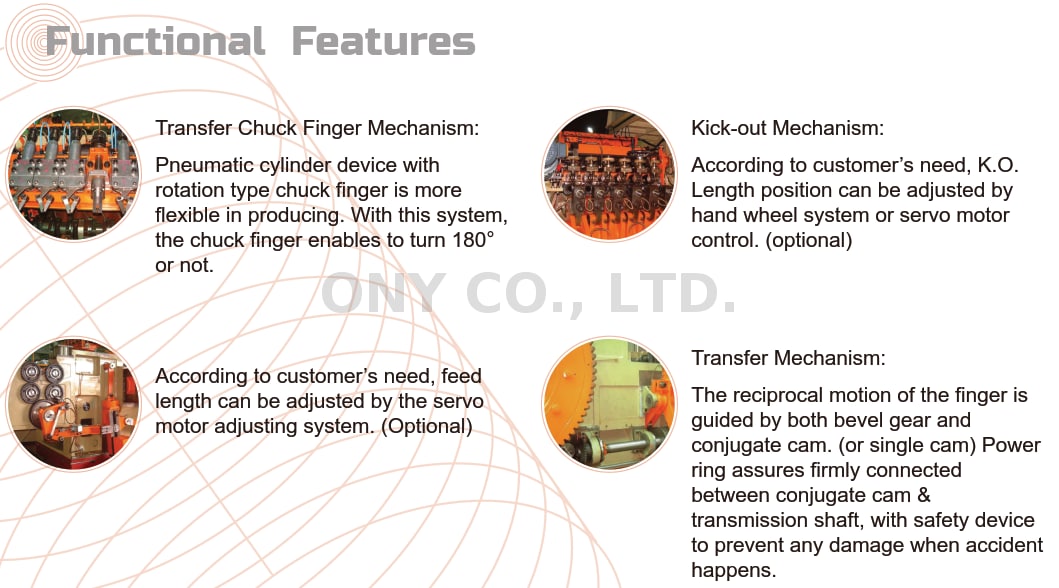 The 5/6 Stations Nut Parts Former represents a state-of-the-art fastener manufacturing solution, engineered to deliver exceptional performance and precision. This advanced machinery features a robust forging load capacity and incorporates an intuitive HMI system for seamless operation. Distinguished by its superior tolerance control and reinforced body frame construction, the former ensures optimal safety and reliability during production processes. The versatile design accommodates a comprehensive range of nut formations, making it suitable for diverse manufacturing requirements. Each model is meticulously engineered to maintain consistent quality while maximizing production efficiency, establishing new benchmarks in fastener manufacturing technology.